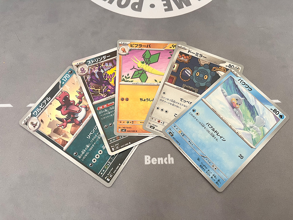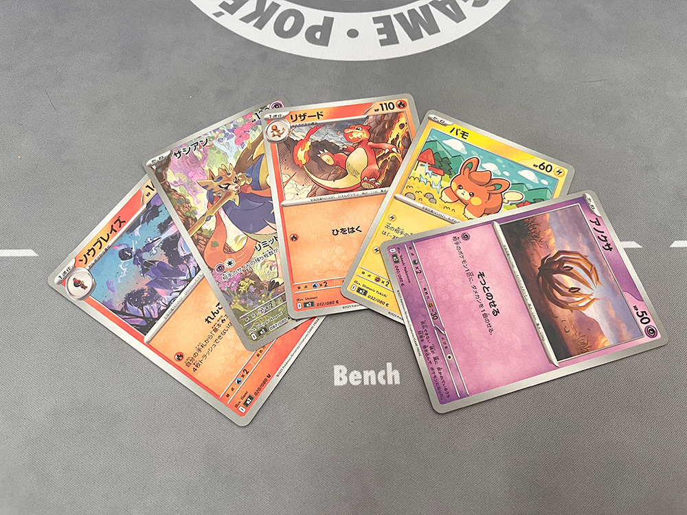 「インフェルノX」の注目カードはパッケージを飾るメガリザードンXexですが、残念ながら今回は引くことができませんでした。しかし、炎タイプのメガポケモンへのエネルギー加速を助ける「オドリドリex」や、悪タイプとして期待の「メガサメハダーex」、特性「バッドアッパー」でエネ加速を担う「ストリンダー」などを入手できました。